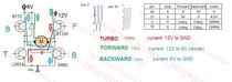 You can measure the forward and backward voltages on pins 17 and 18 . The Turbo also activates Forward signal.