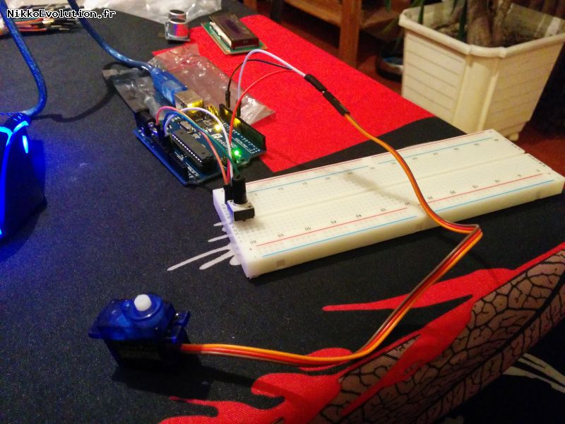 Alors, pour le montage nous avons un servo, un potentiomètre, et notre arduino.