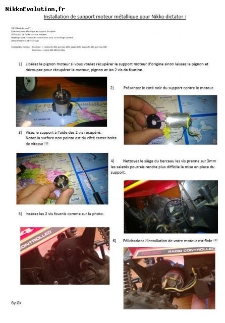 Repérage coté moteur du coté châssis par une peinture noir pour un montage correct. ( monté à l'envers les vis de montages du support deviennent trop courte car les vis de fixations du moteur ne s'encastre plus dans les découpes dans le carter de la dictator !! )