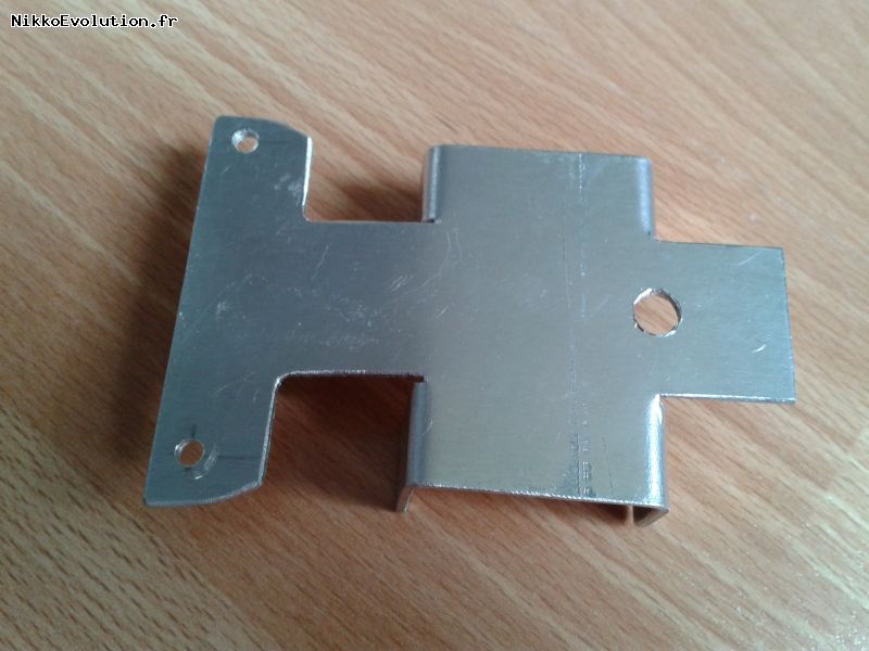 Poser sur la plaque en aluminium l'ancien support en plastique (surement fissuré depuis le temps), puis faire un patron en positionnant bien les trous de fixations et tailler le tout.