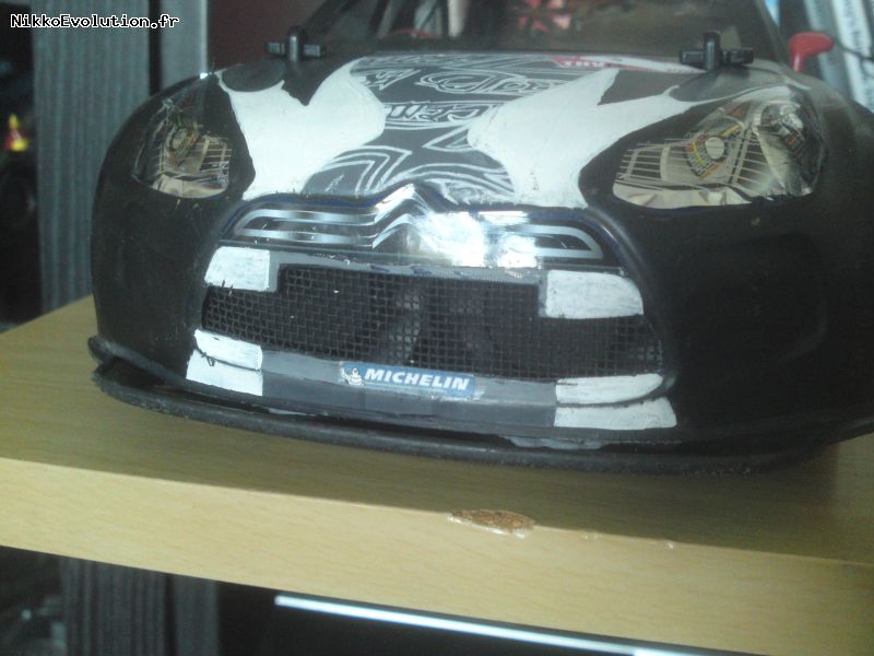 ça me fait grandement penser à mes modifs ^^ sauf que moi j'y ai constaté quelque chose qui me fais douter quand à l'éfficacité du positionnement de ta batterie ... moi avec une pile 9 v (45 g environ ) en porte à faux av je pars bien plus facilement en tête à queue ton toi avec ta grosse batterie , ça doit pas être le top .bordel , faut que je me dépèche de posté mon système de ventilation , c'est presque le même que le miens ( dans sa deuxième configuration ) , sinon , j'aurais plus l'exclusivité =P en tout cas , ça doit siffler sous ta carrosserie , déjà qu'avec mes 9 v on entend bien les ventillo ^^' sinon , pour l'antene , je confirme la bonne idée d'augmenter sa taille pour les grilles , la pose m'a l'air propre et pour le pot , il est un peu long selon moi si tu veux rester d'ans l'esprit wrc . je t'invite ( comme tout les autre) à venir visiter mes pages voitures , les modification que j'opère sont toutes orienter vers le réalisme . ( faut d'ailleurs que je me décide à poster les dernières modifs de ma f1 2012 et le systême de ventillation de ma ds3 ) |