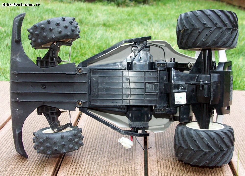 Carrosserie en pvc : Amovible, fixée par 3 clips. Gain de poids possible par remplacement avec une carrosserie Lexan.