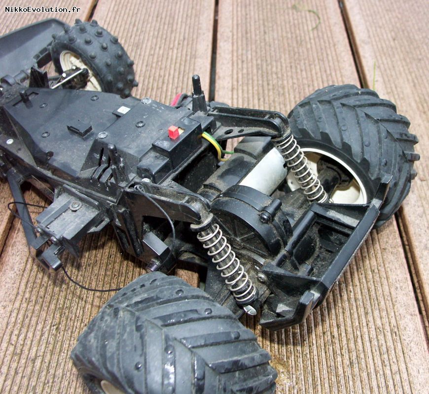 Radiocommande: Proportionnelle 27mhz, émetteur à leviers, quartz amovibles tant sur la voiture que sur l'émetteur.